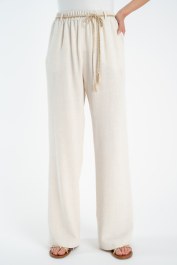 Wygodne, lniane spodnie o luźnym kroju z szerokimi nogawkami.