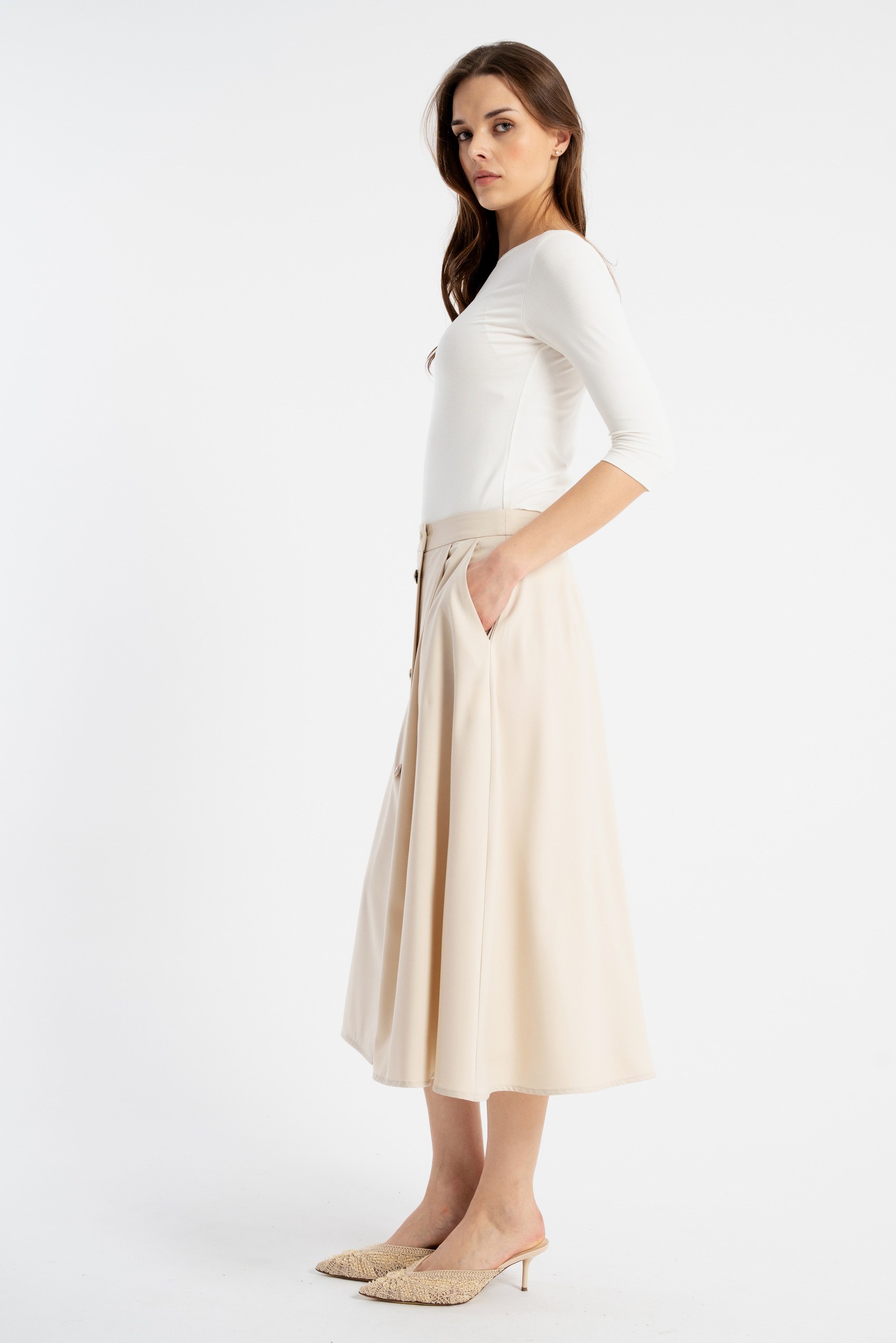 Spódnica Rita Beige to subtelna opowieść o lecie zamknięta w formie - lekka, naturalna i pełna niewymuszonego stylu.
